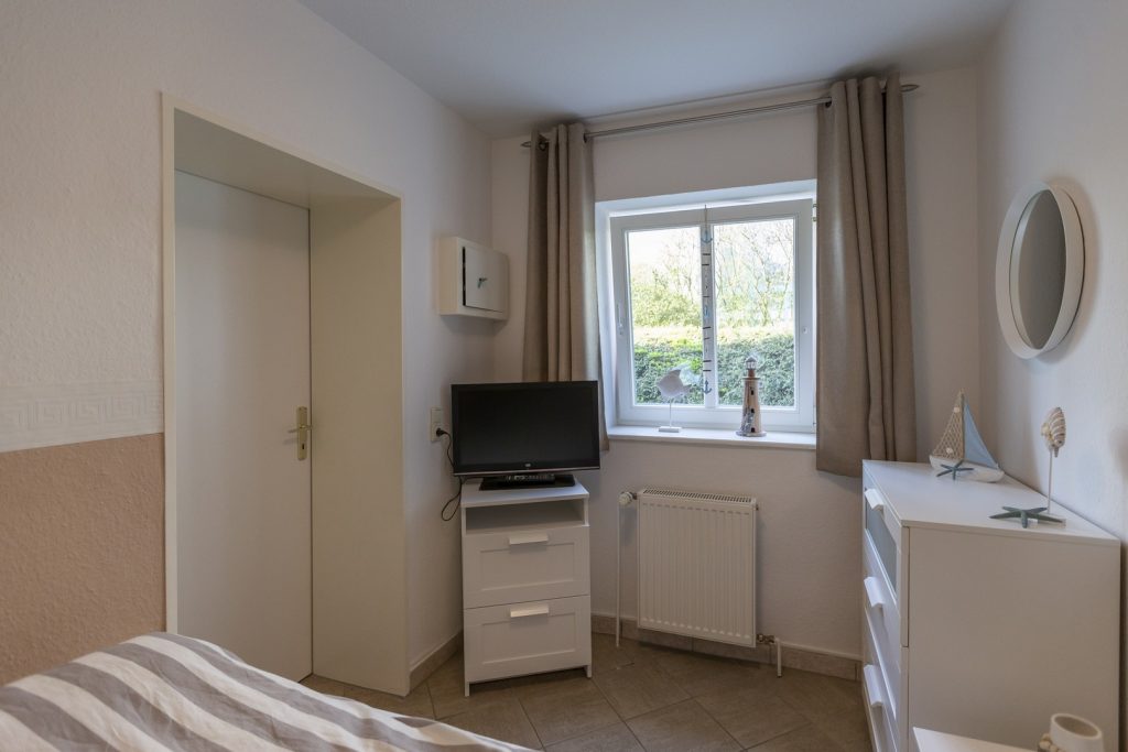 Das kleine, aber geschmackvoll gestaltete Schlafzimmer verfügt über ein gemütliches Nischenbett (1,60 x 2,00m) sowie ausreichend Staumöglichkeiten und einen Flachbild-Fernseher. Außerdem steht ein Safe für Ihre Wertsachen zur Verfügung.