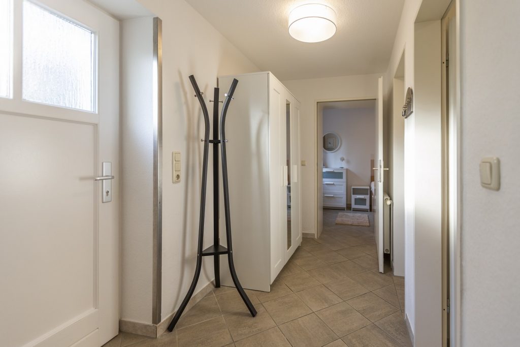 Im Flur befindet sich ein geräumiger Schrank sowie eine Garderobe und Schuhablage.